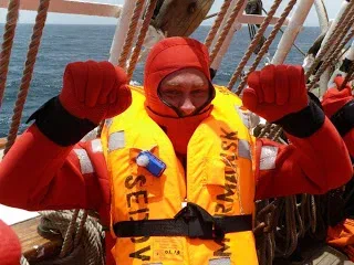 Ну или забава для остального экипажа — в первый же день одеть нас в ГТК (гидро-термо-костюм) и поржать! Но даже Зигфрид, в свои 75 лет — не стал улоняться, а оделся и стал реальным героем новостей, со своей прекрасной фотографией!