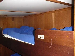 Про рутину — подъём в семь, питание в море четырёхразовое — простое и добротное. Спасть в кубриках — от 6 до 10 человек (ну кроме особо люксов, где обычно «важные пассажиры» живут — там вроде по двое), душ общий, туалеты раздельные. Вот моя шконка, в третьем кубрике.