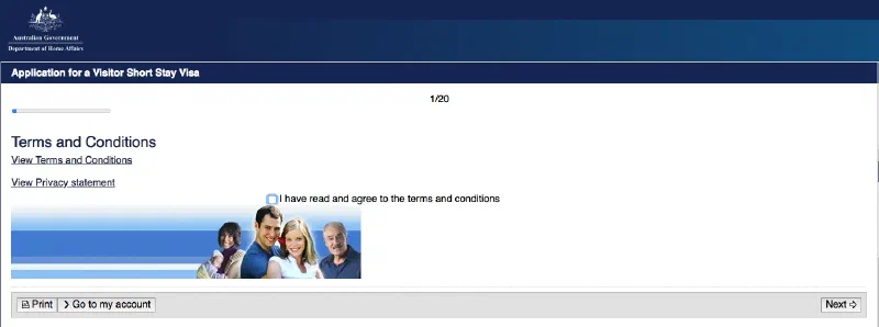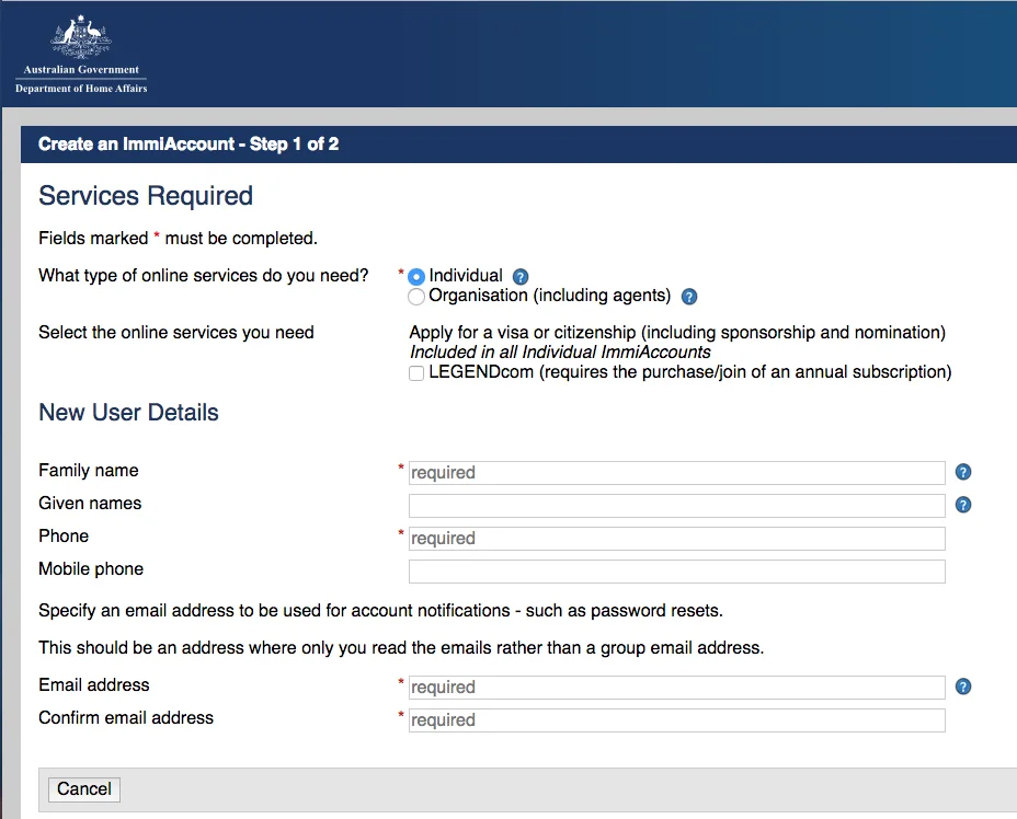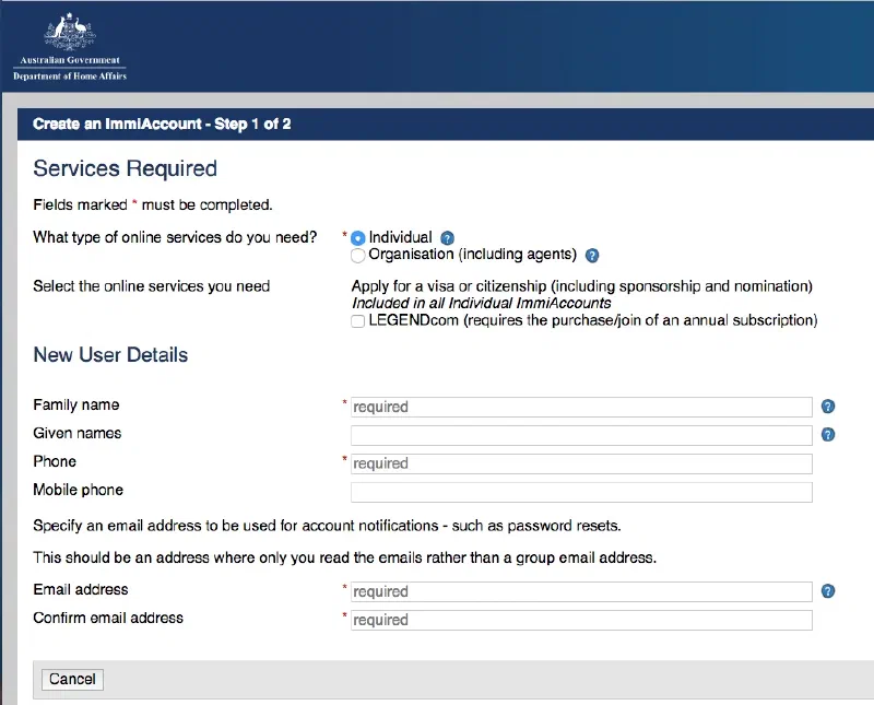 Начинать надо с регистрации на официальном сайте подачи заявлений на визу - https://online.immi.gov.au/lusc/register - вводите имя, фамилию, почтовый адрес, ничего сложного. Для подачи запроса на несколько членов семьи можно и нужно использовать один аккаунт, там есть возможность внести мужа/жену и детей.