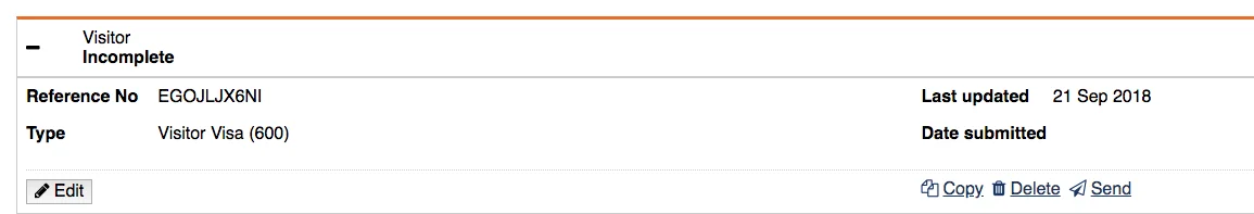 Я заполнял несколько часов, в принципе там всегда можно сохранить и выйти, потом это заявление будет видно в списке и можно нажать Edit и вернуться на первый шаг заполнения, дальше там просто дойти до того, где остановился и продолжить дальше заполнять. Вот пример я сейчас вышел из того заявления, которое делал для примера и его видно в списке как незаконченное.