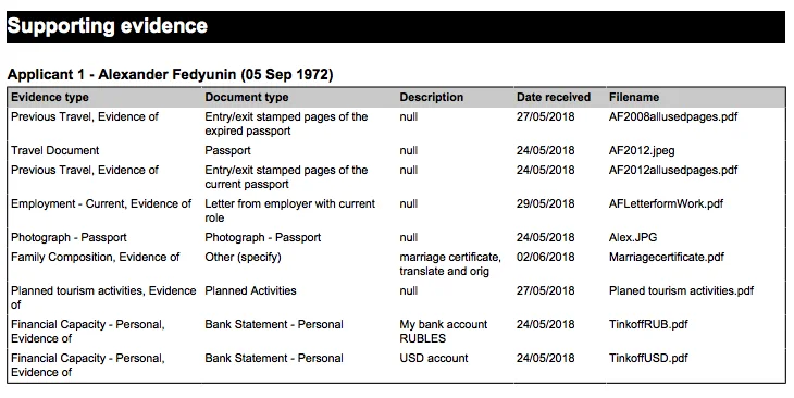 - Financial Capacity - Personal, Evidence of Bank Statement - Personal - подтверждение платежёспособности, я запросил выписку у Тинькофф про свои депозиты в рублях и долларах, приложил их стандартное письмо, которое они присылают на такой запрос. Там по списку много вариантов - вплоть до справки НДФЛ.