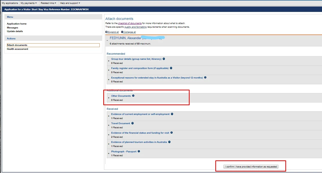 Как будет заполнено полностью - переход к следующей стадии, добавлению запрошенных документов. Под конкретное заявление будет запрос обязательных документов и рекомендуемых. Для примера - у жены был в обязательных marriage certificate как основание для смены фамилии. Его пришлось идти и переводить и заверять перевод (формально не требуется нотариально, достаточно чтобы переводчик был аккредитованный - но в Ереване таких нет, сделали нотариальную, это устроило Австралию).