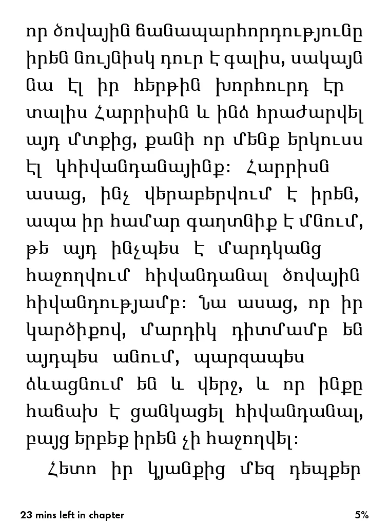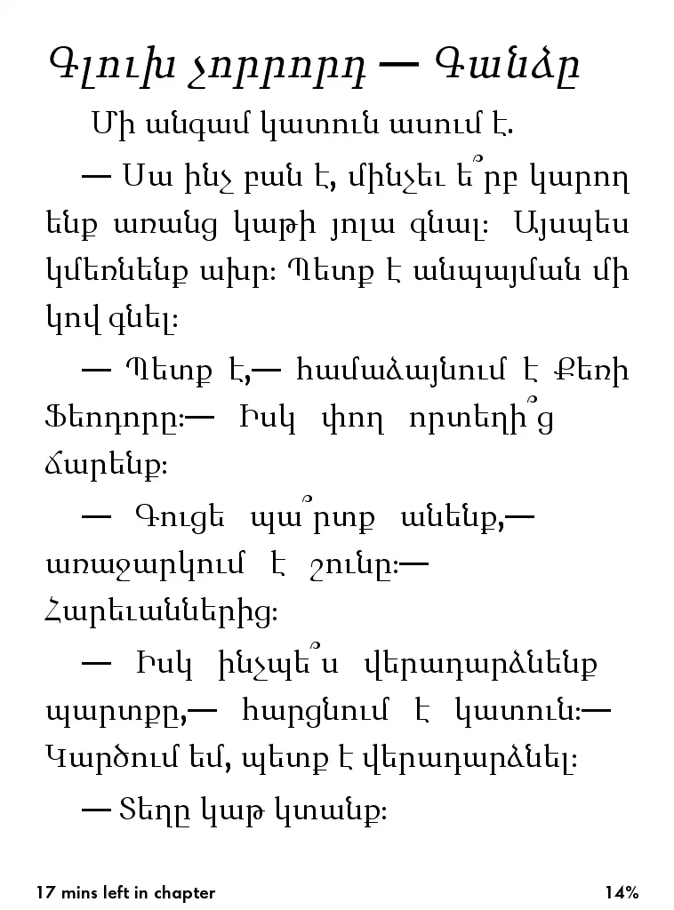 Кстати, для чтения книжек рекомендую и шрифт загрузить правильный, там в отличие от родных шрифтов намного понятнее буквы ն մ զ գ различаются, глаза не так устают.