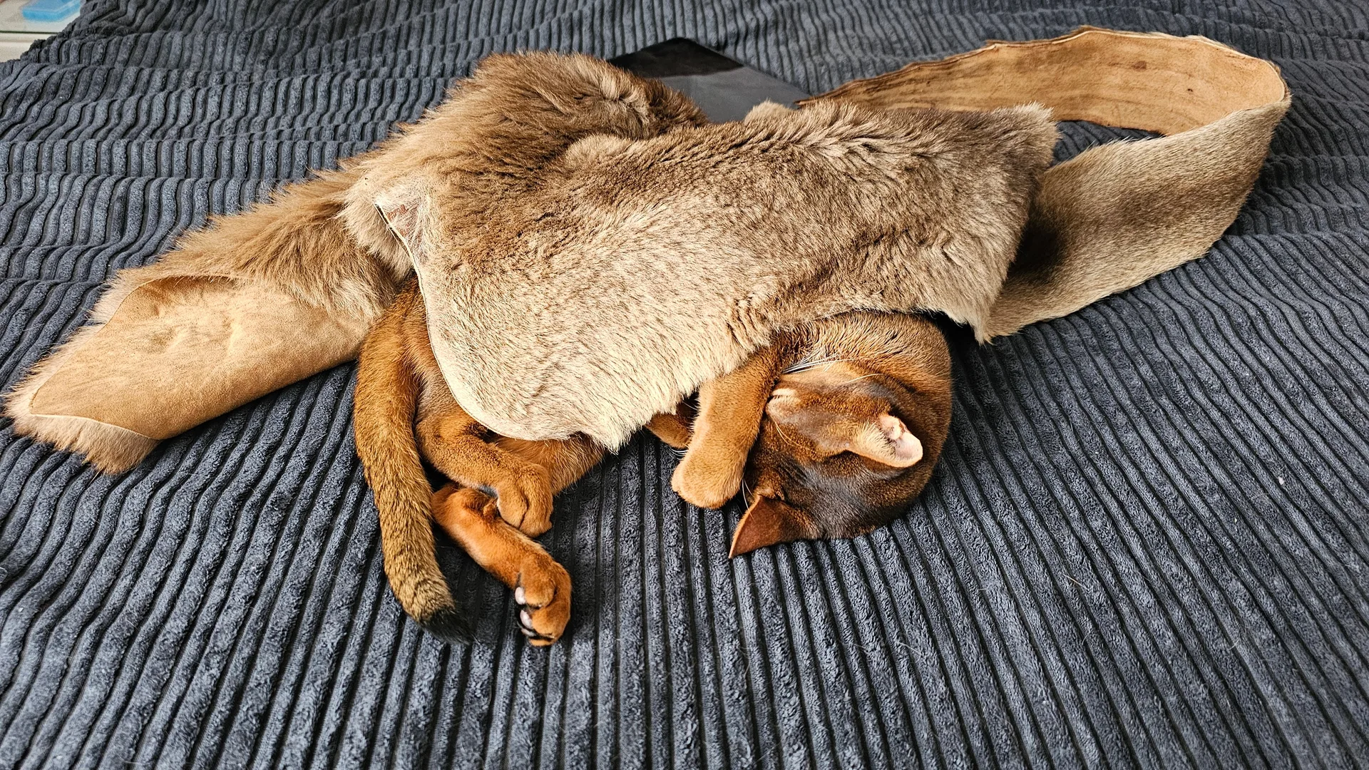 Котику шкурка приехала, сразу укрылся 🥰