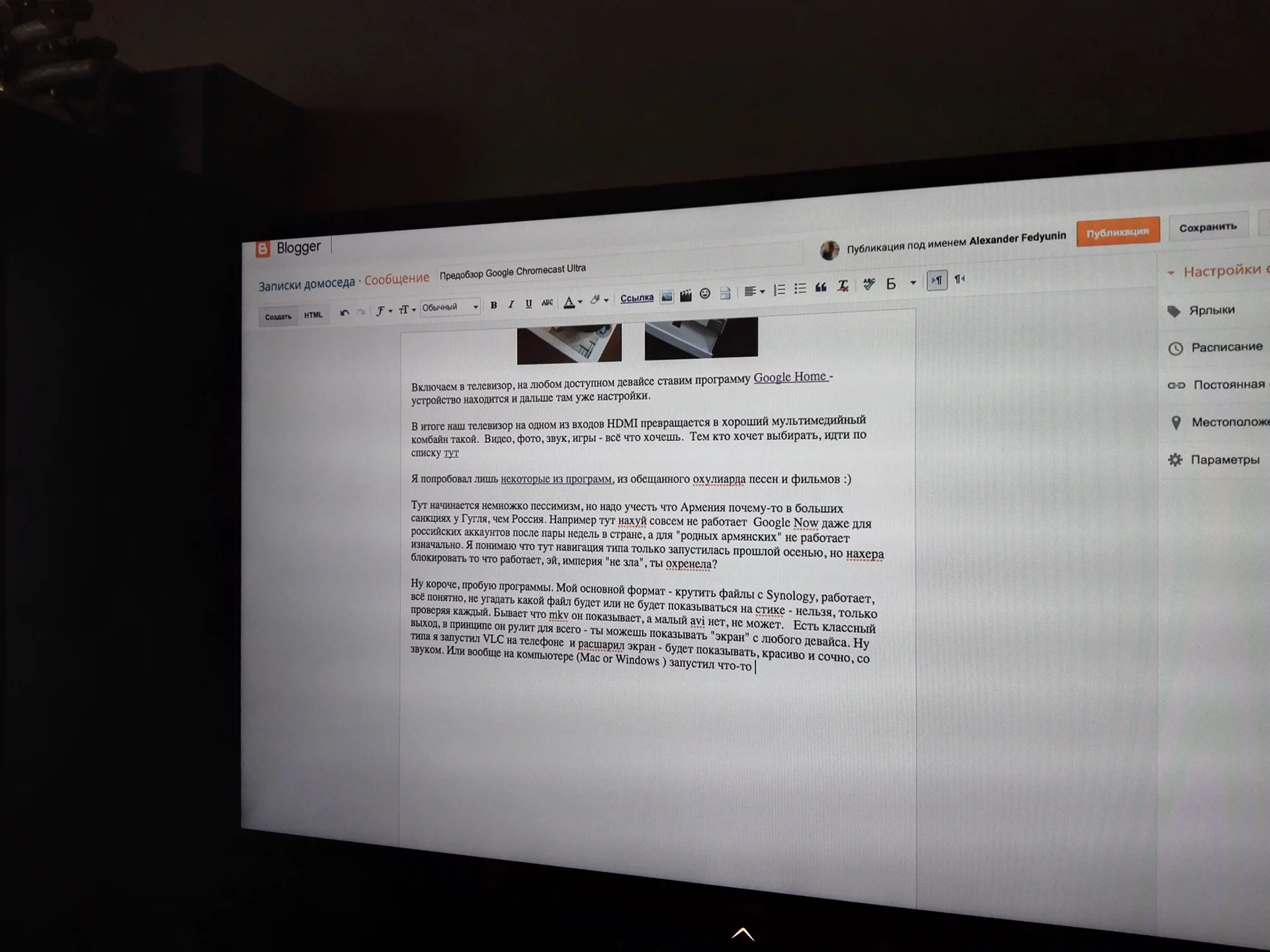 На днях пришла посылка с заказанным под конец года Google Chromecast Ultra.Надо заметить, что мы дома давно смотрим всякие фильмы/сериалы в 90% случаев с планшета, но иногда нужно и хочется что-то посмотреть вместе на телевизоре, со звуком и цветом. И тут у нас работал сначала просто ведроид-плеер из Китая, потом типа продвинутый ведроид-плеер 2К из Китая же, который иногда любит плеваться от кодировок, иногда ему хочется обновлений, иногда просто тоска по дому - и он тогда говорит, что мол хрен Вам, а не кино, дорогие товарищи.