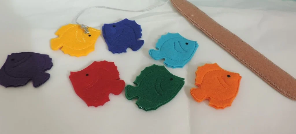 А также играем в рыбалку, ловим рыбок (вшиты магниты) и изучаем цвета радуги.