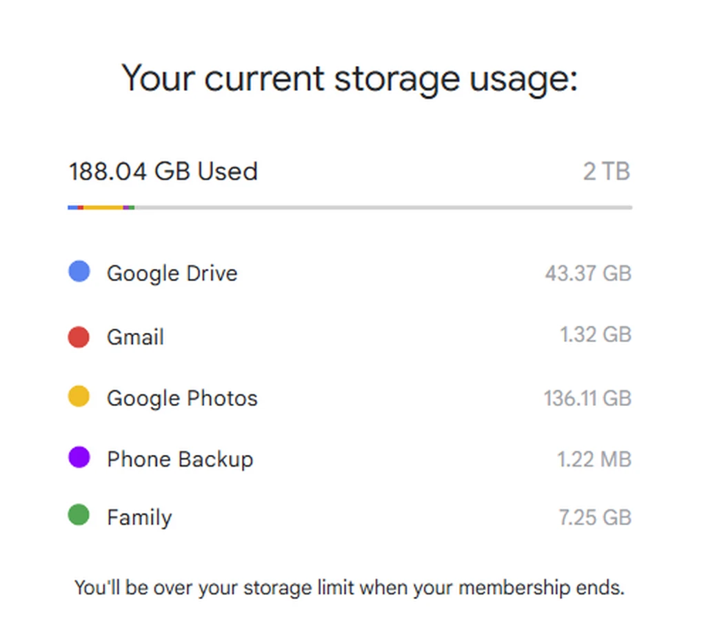 Ну и вот третий звонок недавно прилетел, я как-то пропустил, что бесплатный лимит стал 15Gb на все сервисы (да, у меня был Google One, ещё с армянских времён).