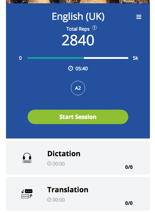 UPD от 14 апреля 2018 - недавно появился ещё один толковый функционал - диктант и перевод на слух. Это в дополнение к основному функционалу можно себя дополнительно проверить. Появились в виде серых кнопок под стартовым окном курса