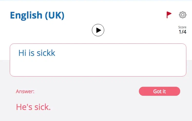 Если неправильно выбрал - показывает что на самом деле было сказано.