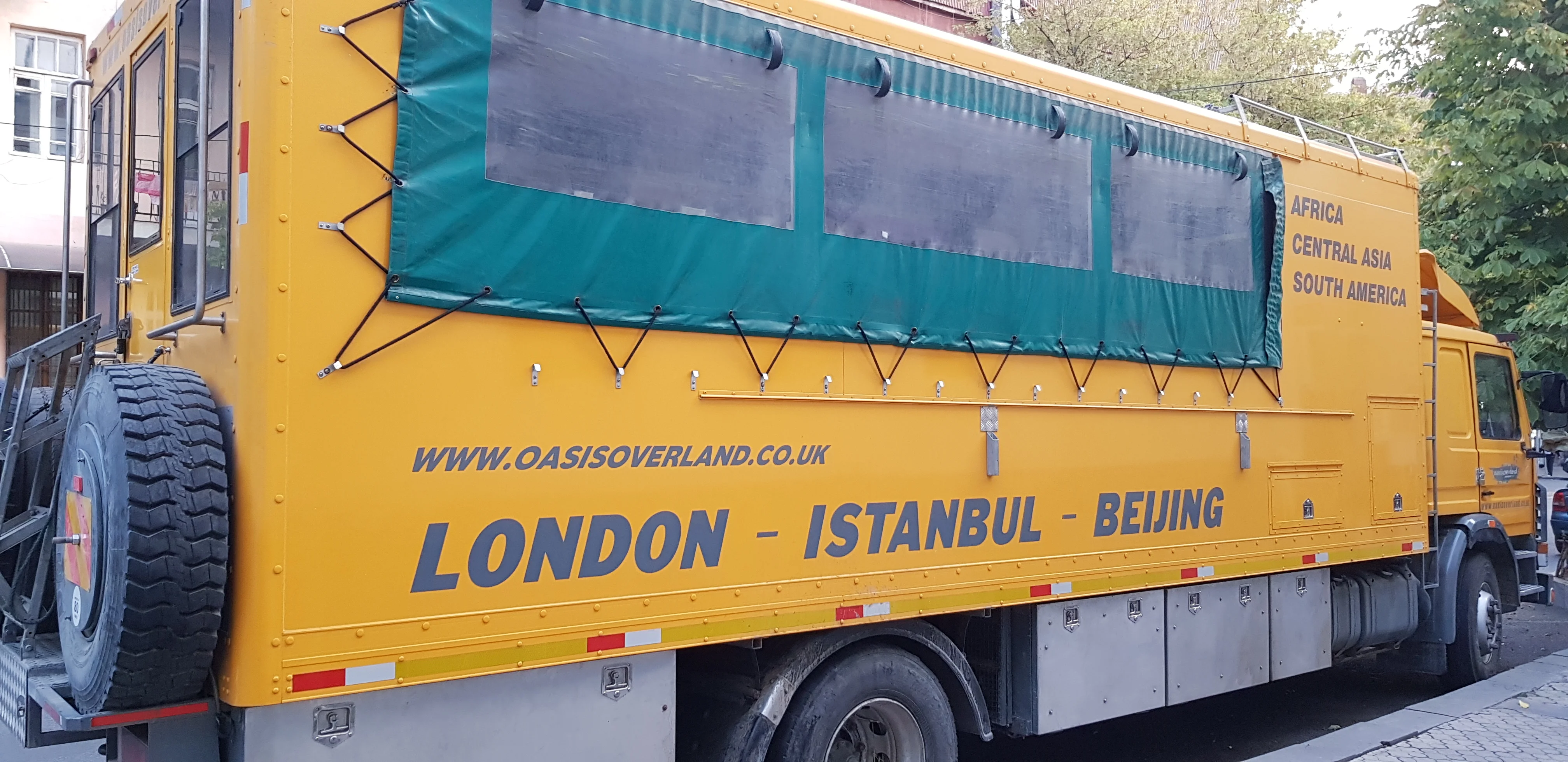 У нас возле дома регулярно (ну несколько раз в год) попадается необычный жёлтый грузовик, на котором на борту написано Лондон-Стамбул-Пекин.