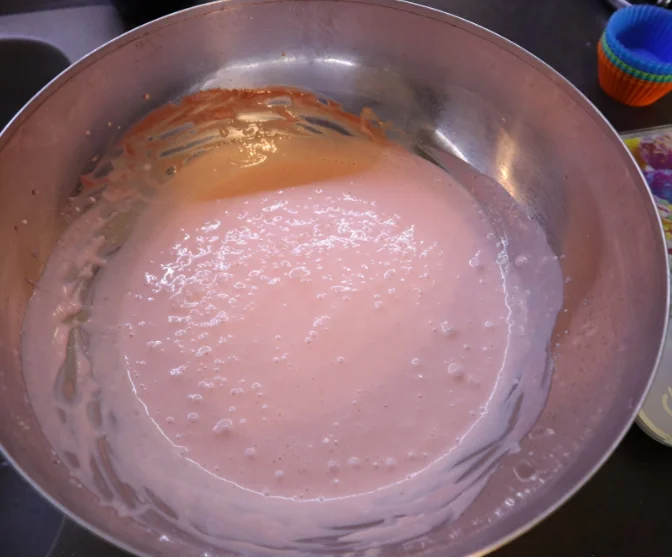 Мешаем чуть-чуть и добавляем сок, дальше мешаем пока не перемешается и через некоторое время начнёт густеть.