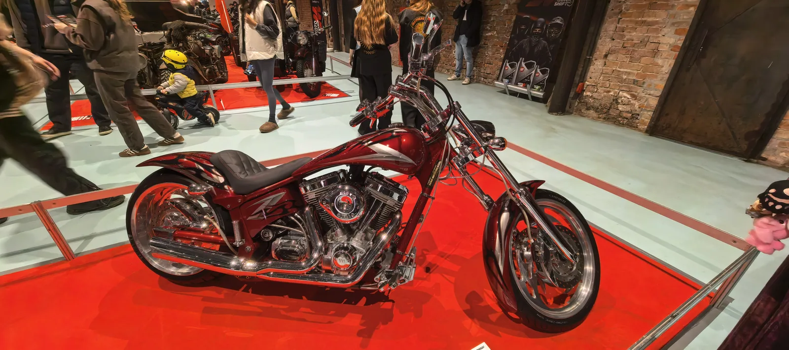 В пятницу, ещё до снега, доехали с Олесей на IMIS - петербургский мотосалон, 24-26 апреля в Севкабеле. Это уже третий раз за три года что я живу в Ленобласти, и третий раз выставка переезжает: 2024 - Экспофорум под Пулково, 2025 - DAA Expo у раскопок Охтинского мыса, теперь Севкабель. В 2024-м на стенде Royal Enfield я впервые познакомился с Super Meteor 650, забрал каталог у дистрибьютора, и через год именно его мы и купили. Это, кстати, дистрибьюторская работа Royal Enfield - молодцы: и буклеты на стенде нормальные, и потом подхватили сайты и дилеры. Но в 2024 выставка, получается, хоть как-то помогала продажам и знакомству с новинками.