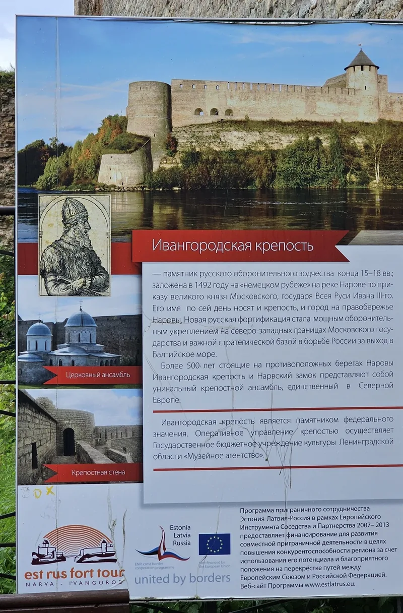 Но сам Ивангород находится в особой пограничной зоне и туда нельзя вот так просто проехать. Это мы ещё в июне выяснили, когда по пути из Пскова хотели завернуть и типа быстро посмотреть крепость, попить кофе и поехать дальше до дома. Пограничник на блок-посту посмотрел наши паспорта, на нас как на дурачков и сказал: “С вашей пропиской нельзя проехать без пропуска”. На вопрос где пропуск - сказал езжайте в Питер в главное управление ФСБ и там оформляйте, ага.