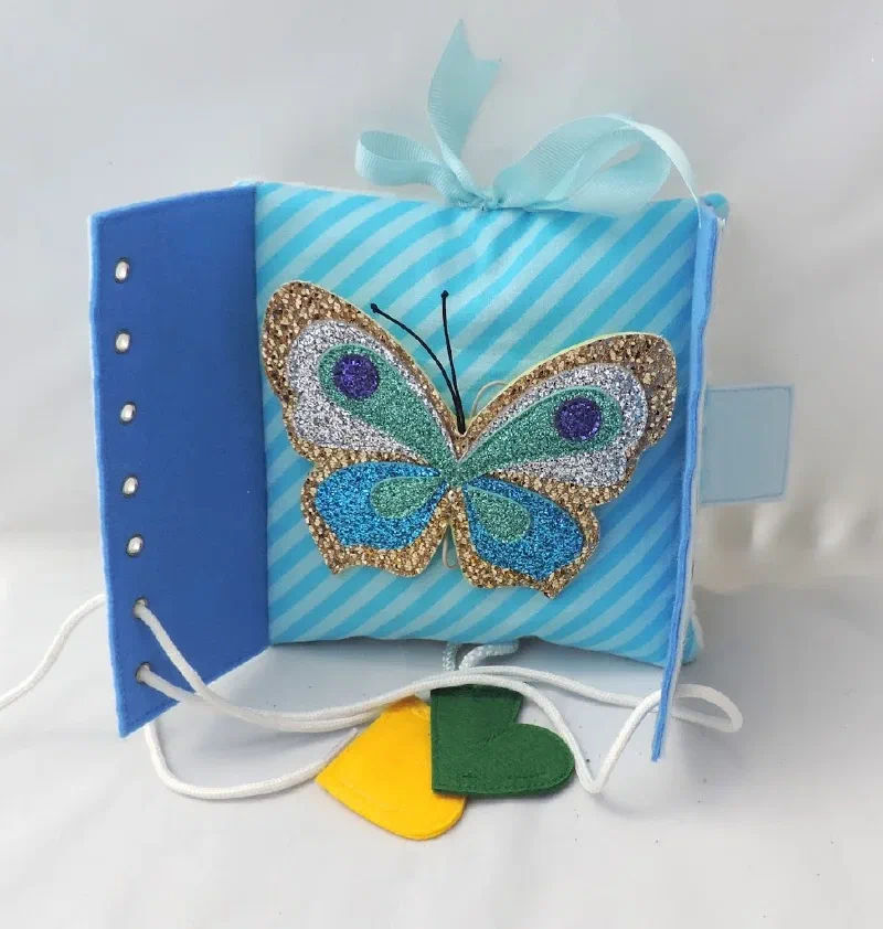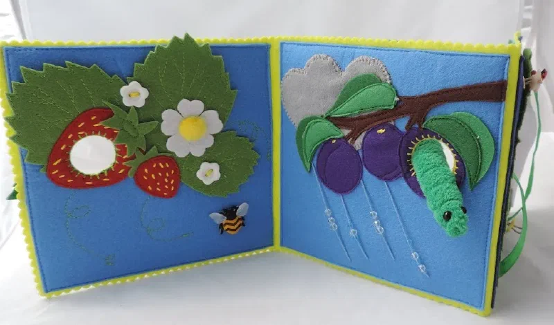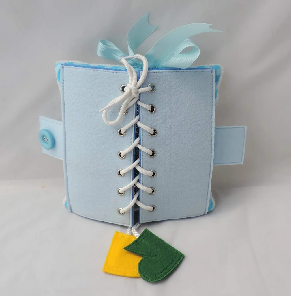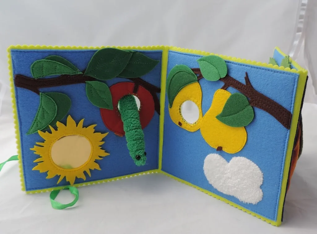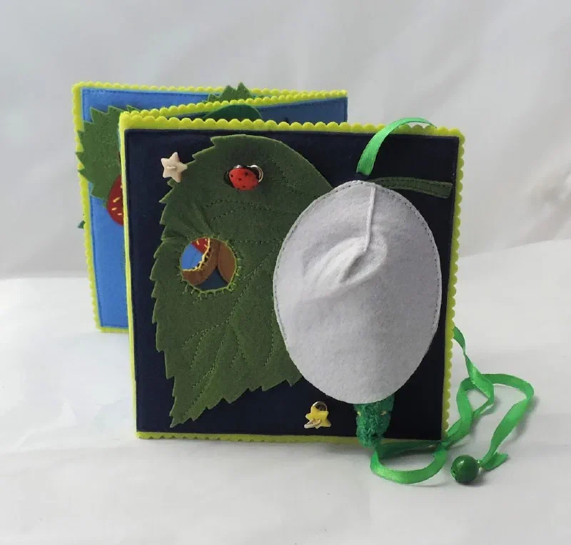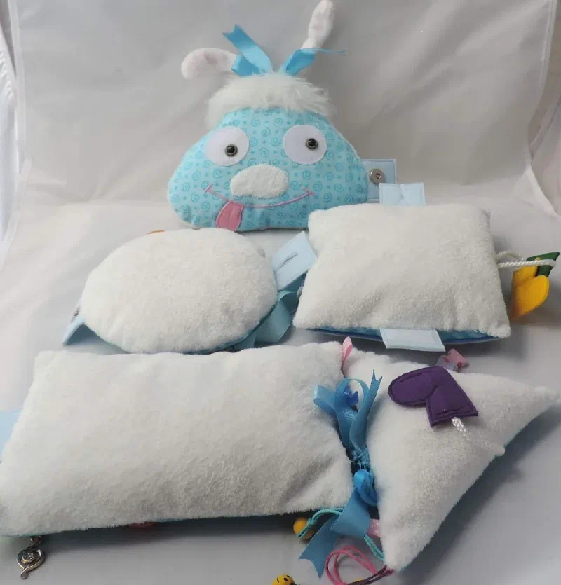 Выполнено из американского хлопка, корейского фетра и плюша,очень приятного на ощупь . Для дополнительных тактильных ощущений.