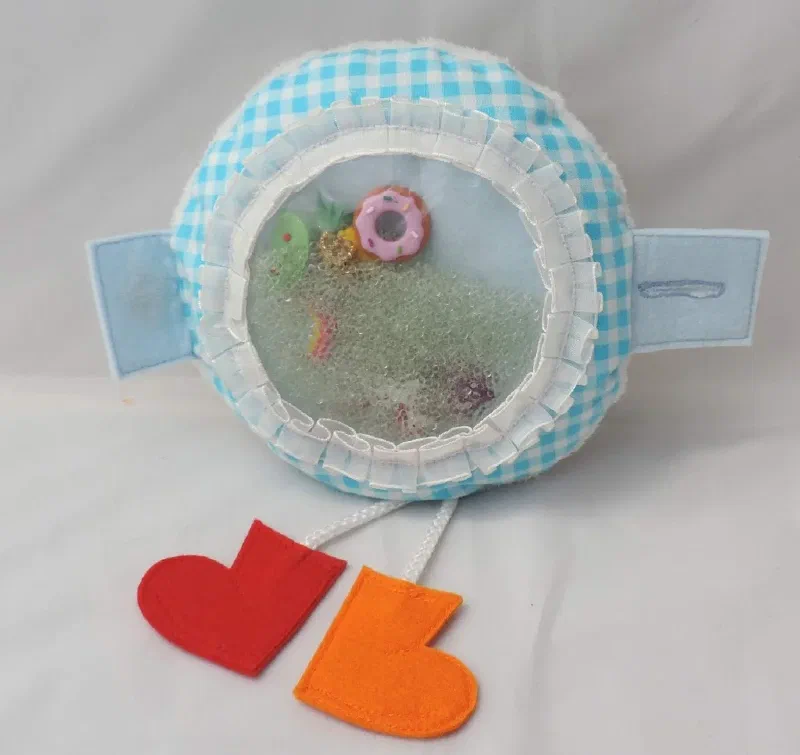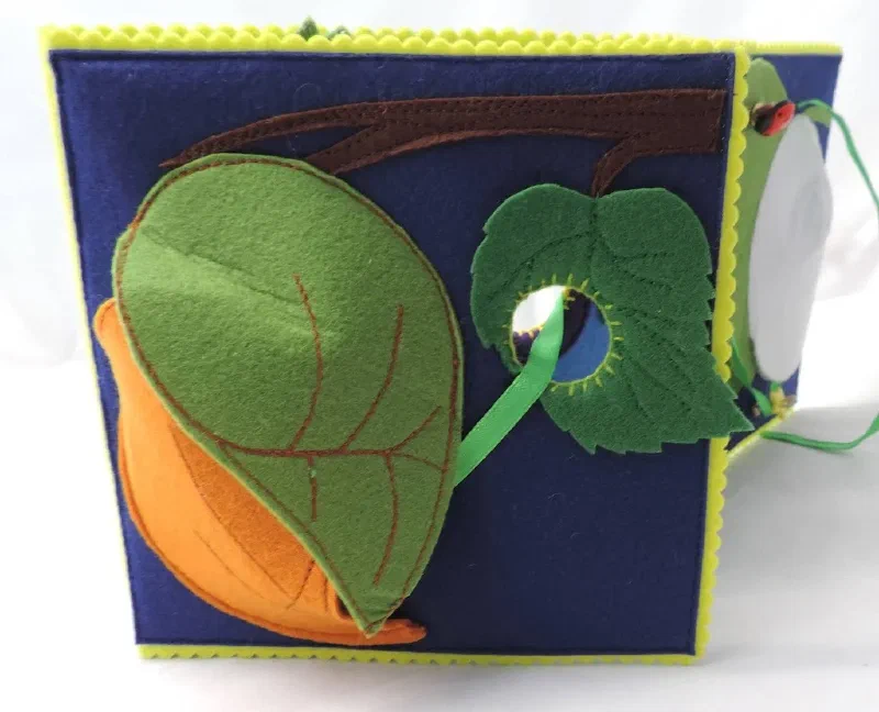Круг- игрушка искалка. Малыш ищет спрятанные там фигурки. Следующее крепление пуговица.