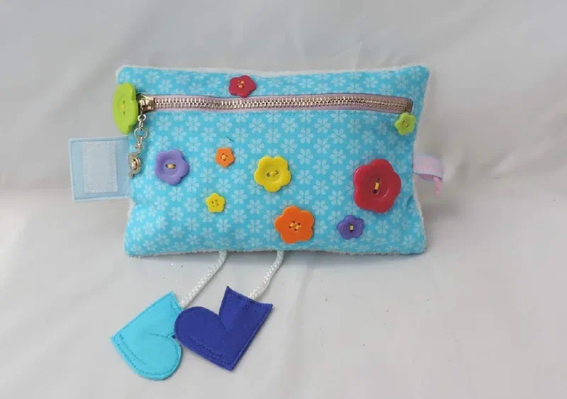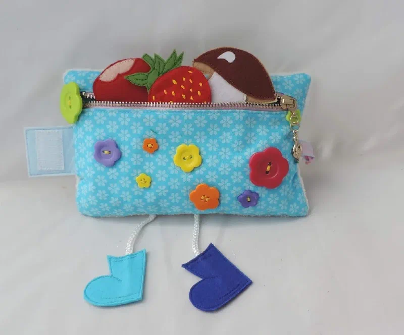 Прямоугольник . Учимся открывать и закрывать молнию. Пуговицы цветочки подобраны по парам : Большая - маленькая. Крепление - фастрикс