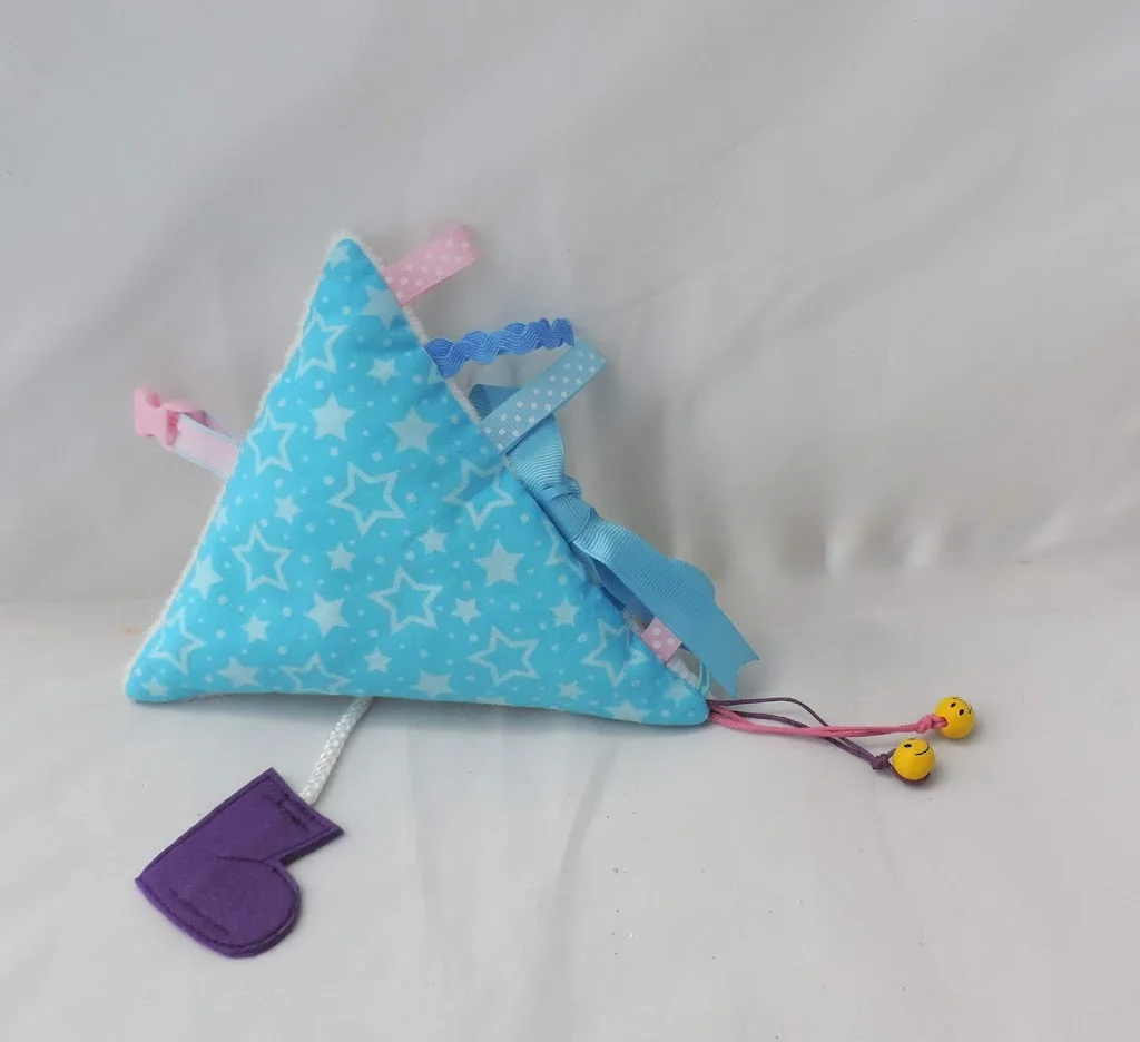 Треугольник . в него вшиты различные ленты. А также внутри пищалка.