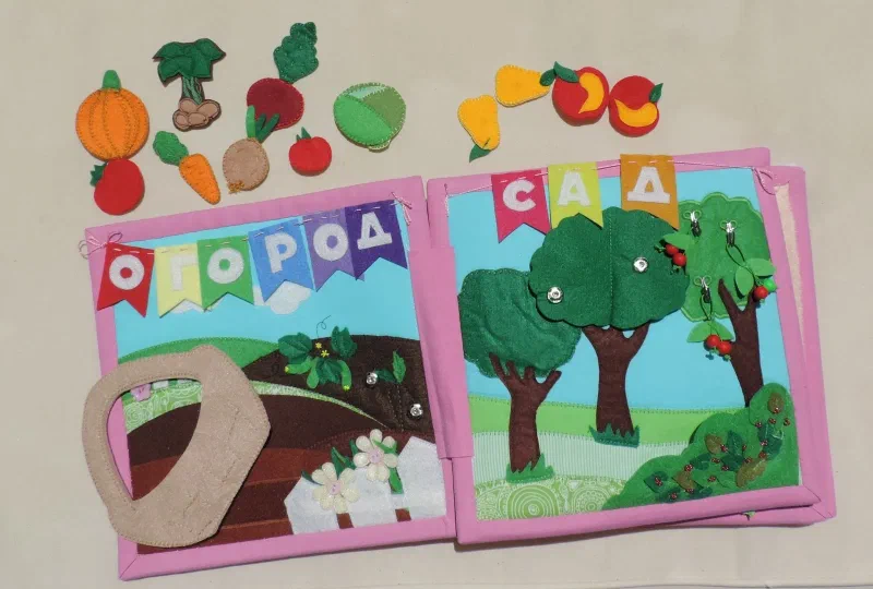 Учим понятия сад и огород . Собираем урожай в корзинку. Изучаем разные виды застежек. ( кнопки, крючки, велкро)