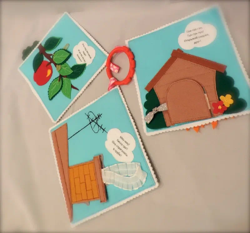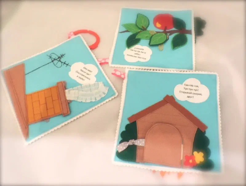 Книжка - малышка . Новый вариант 31 января 2018 Представляю новый вариант книжки для малышей до года.Более подробные и яркие картинки. Максимально безопасны для малышей, все детали пришиты или вышиты. Нет пуговиц. странички собраны на грызунок.