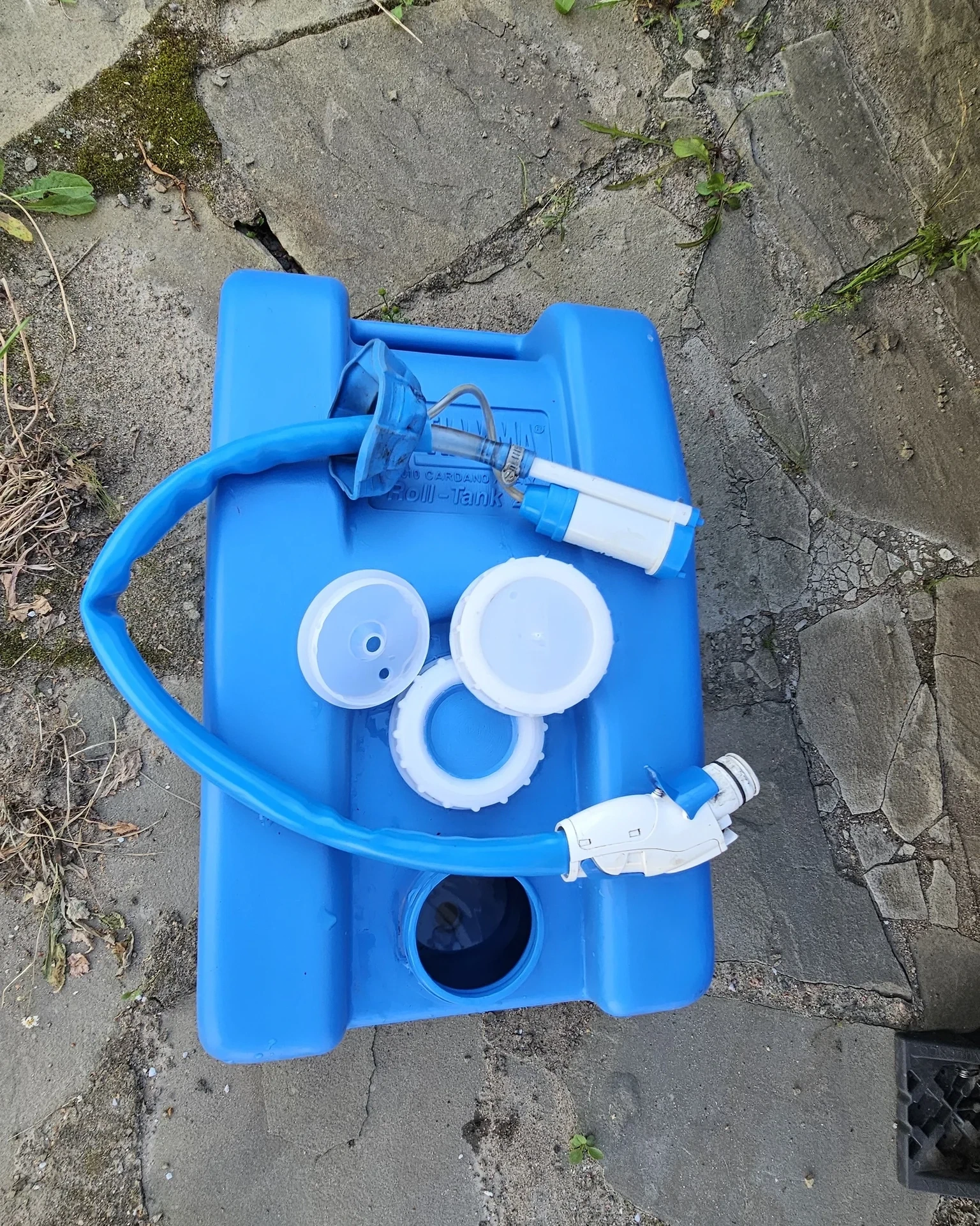 - Английская методика баков с чистой/грязной водой подбешивает :) Но например ни в первом, ни во втором кемпинге слива на местах не было, так что даже если бак для серой воды встроить (но мы выбрали пока бак для чистой), то нужно будет кататься и сливать куда-то. Пока заменял ведром, понятно что серый бак надо покупать.