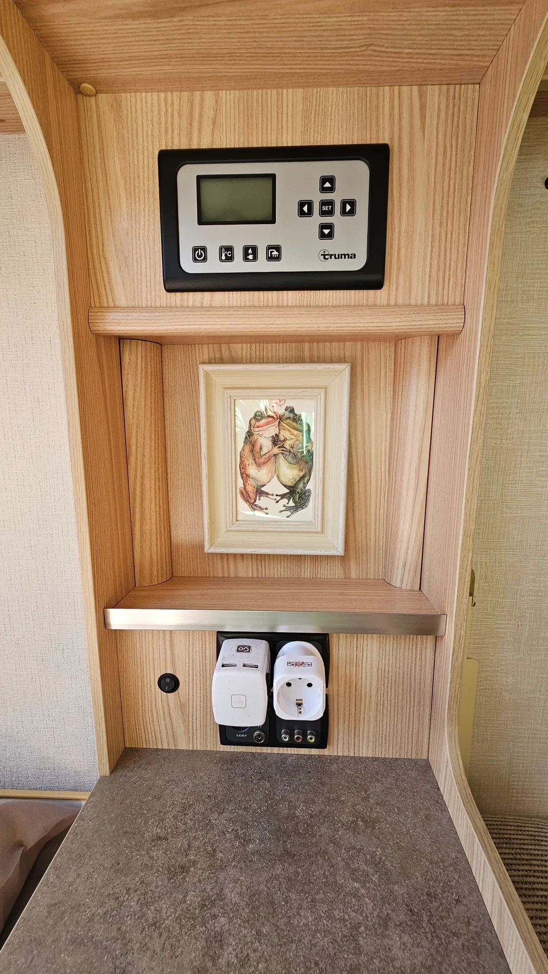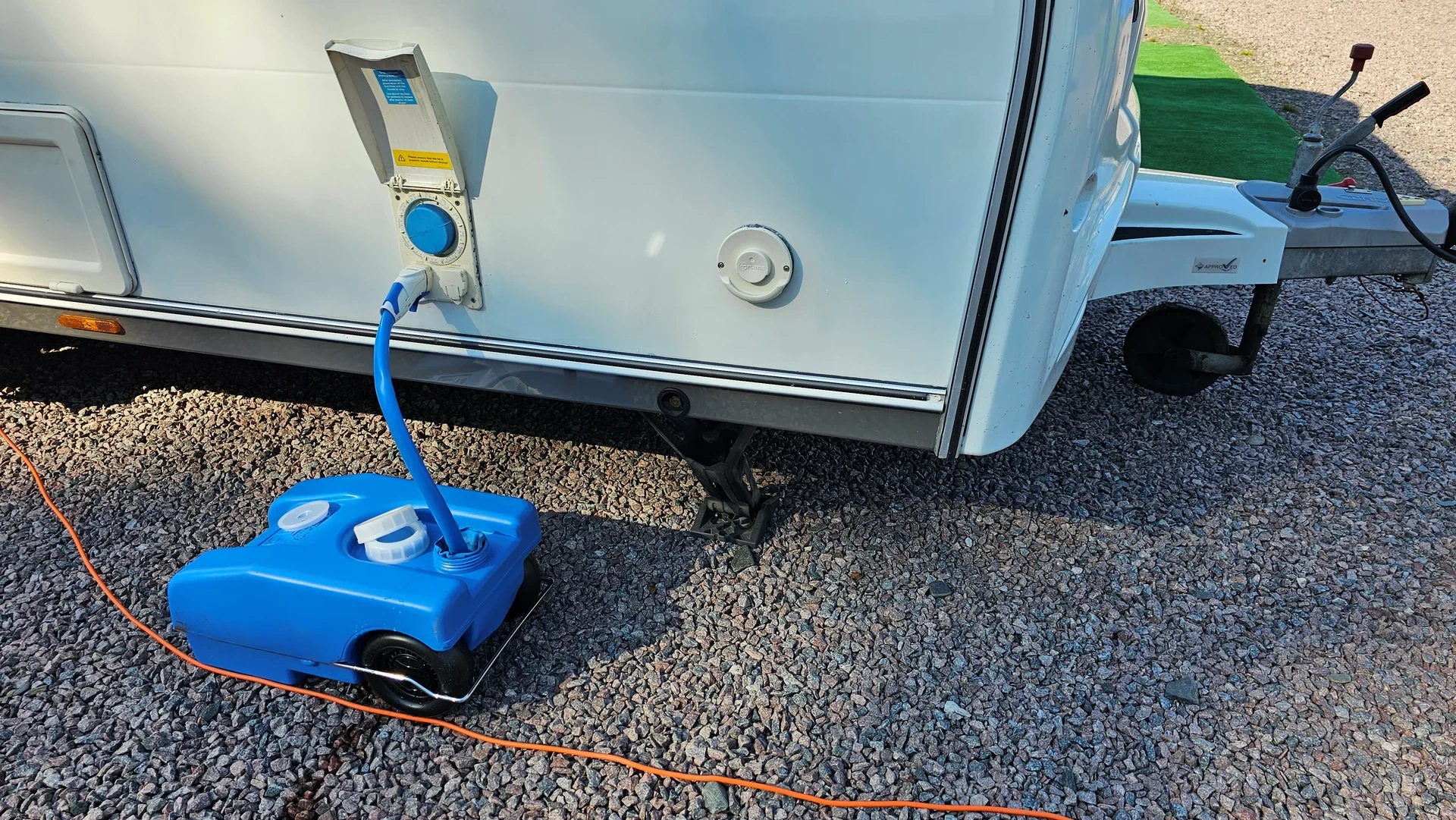 Всё как нам надо! Заказали дополнительно стразу установку мувера (иначе во двор не загнать, у нас тут сложно и перепады, да и так на паркингах пригодится) и бака для чистой воды. Тут же столкнулись со странностями английскими, как у них всё с водой сделано. В автодоме обычно как - свой большой бак для чистой, не менее большой для использованной серой, возишь всё, заливаешь по мере надобности и сливаешь как есть возможность. А тут нет - бак даже внутри поставленный нельзя на ходу держать полным (оно и понятно, не рассчитана конструкция прицепа на такую развесовку), ну и для серой аналогично ни места нет, ни конструктива. В итоге делают либо дырку в стену и во внутренний бак заливать через воронку/переходник, либо более сложно как у нас - дополнительный насос внутри и систему кранов/клапанов. Внешний же бак пришлось купить и использовать его с родным насосом (опять внешним же) для залива во внутренний (ну если долго стоять, можно набрать) или же сразу использовать.