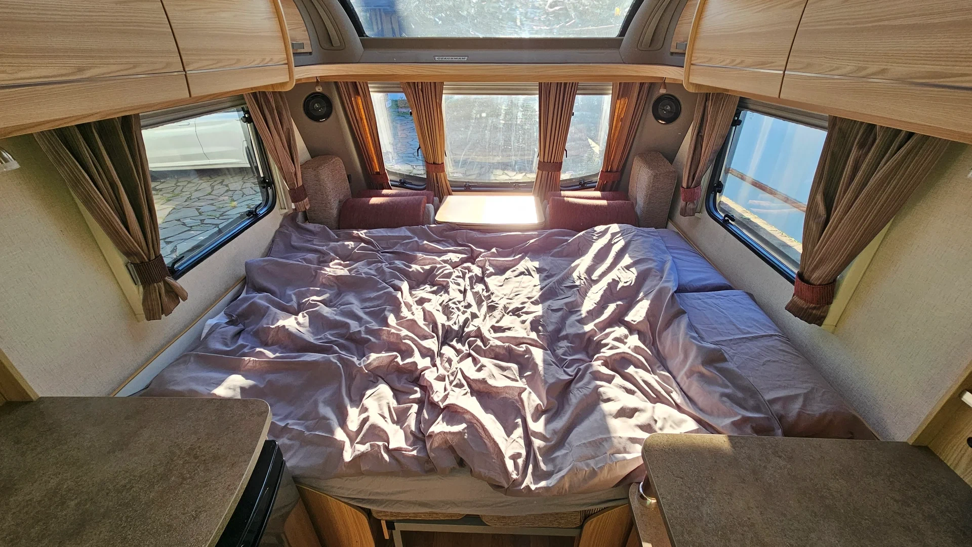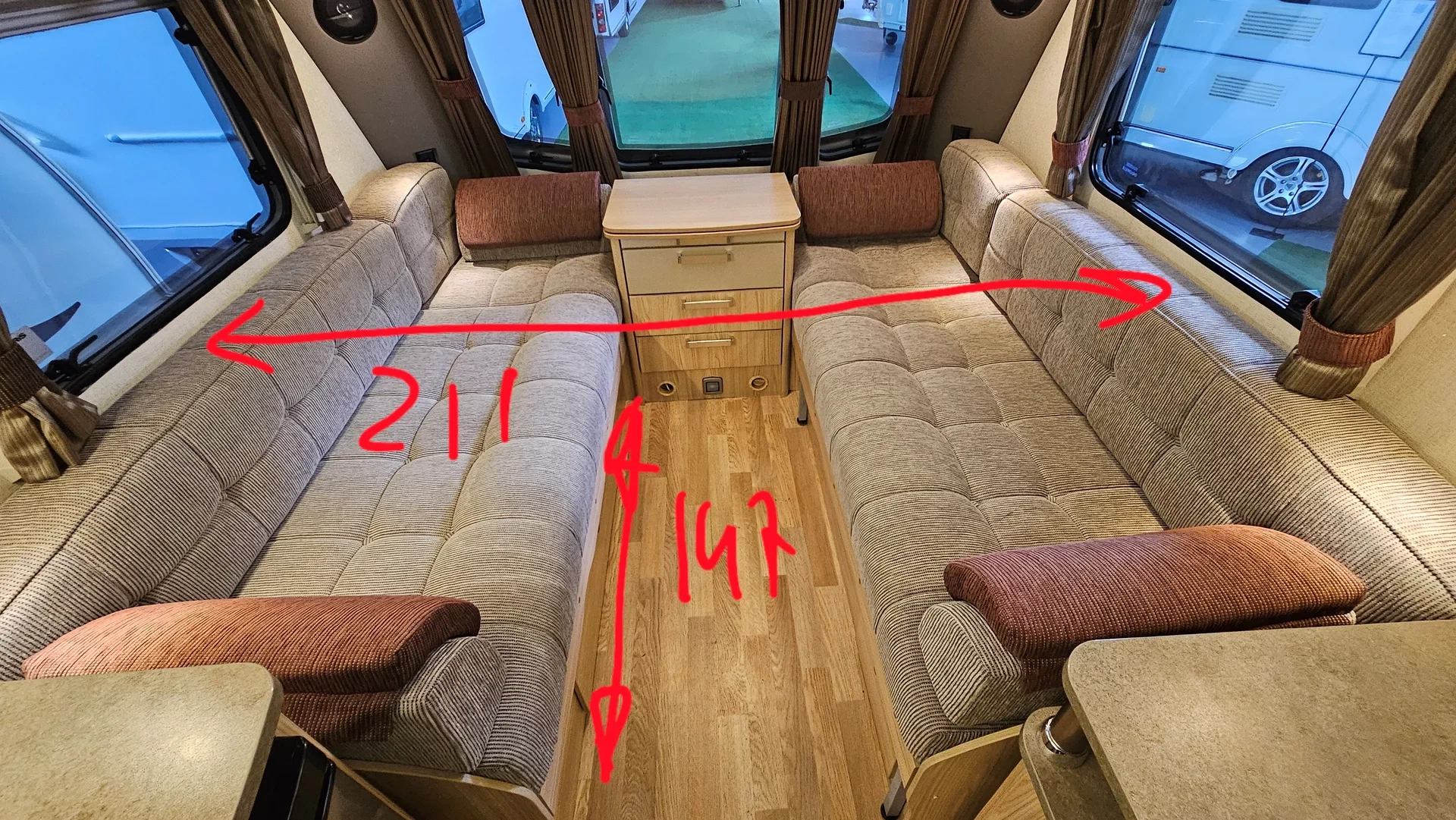 Пришло время искать прицеп - пересмотрели все варианты в Питере, кучу объявлений по стране, доехали до Пскова на площадку с большим выбором - всё не наше :( Мы же в любом случае опытные с учётом домов, понимаем свои загоны и что нам надо/не надо, а тут все варианты или под семью с 2-3 детьми или же под молодёжь тусовочную, нормально для “пожилой” пары что-то ничего нет, либо куча лишнего. И вот в Пскове как раз мы увидели эту английскую планировку с большим санузлом, двумя зонами столов/сна и возможностью сделать так, что одну зону мы превратим в стационарную кровать, не будем даже её никогда без повода трогать, а завтракать/ужинать нам вполне хватит столика для двоих.