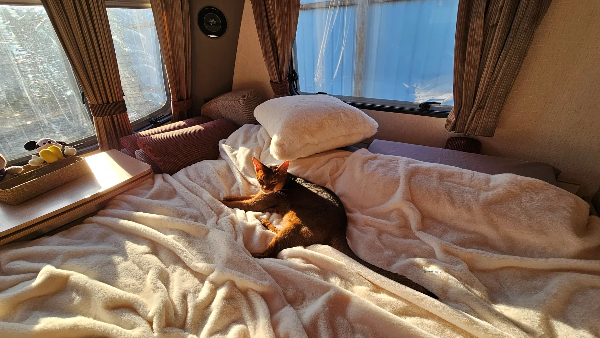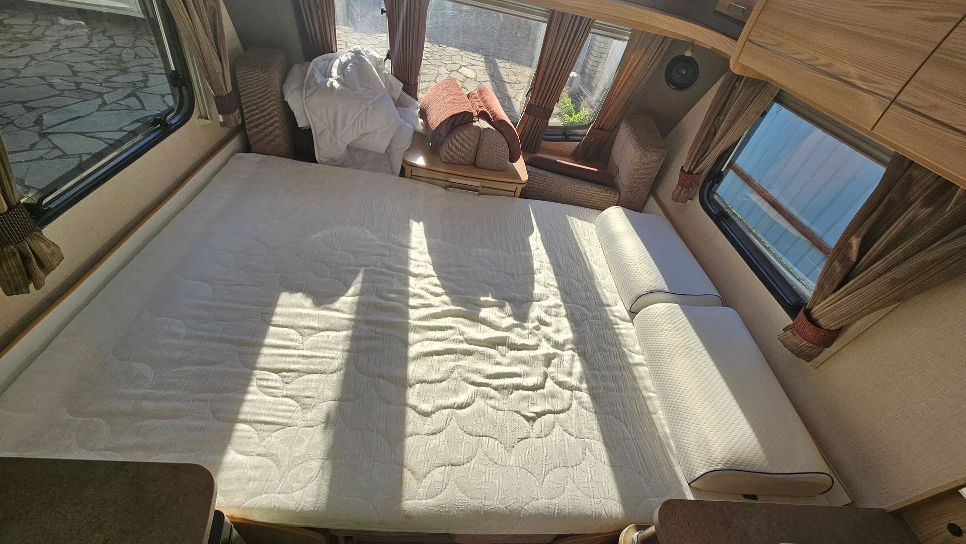 Идея с цельным матрасом поверх стандартных мест - отличная, спать максимально комфортно, тут прямо понимаем, что не зря столько времени потратили на подбор компоновки и продумывание решений.