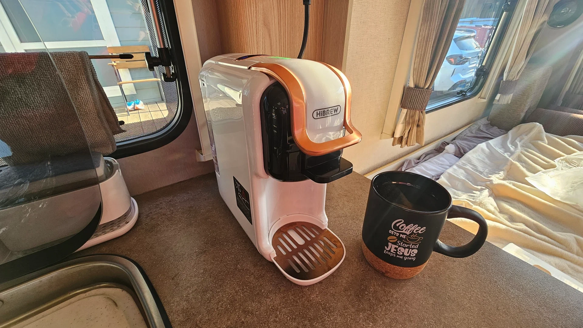 Кофеварка отлично вписалась, пакеты с кофе подобрали толковые, так что когда 220 есть входящий, то кофе из капсул, когда нет - в джезве на газу, тоже не сильно сложно.