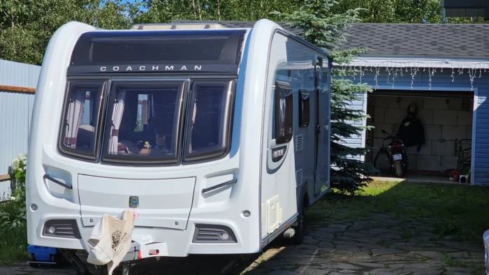 И тут как раз в Первом Караване в Питере два таких! Бинго! Поехал смотреть и тот что подороже, поновее и вообще отлично сохранившийся (им похоже не пользовались, например микроволновка была в заводской плёнке) Coachman Pastiche 2012 года показался нашим вариантом. Подумали, поторговались и решились - берём!