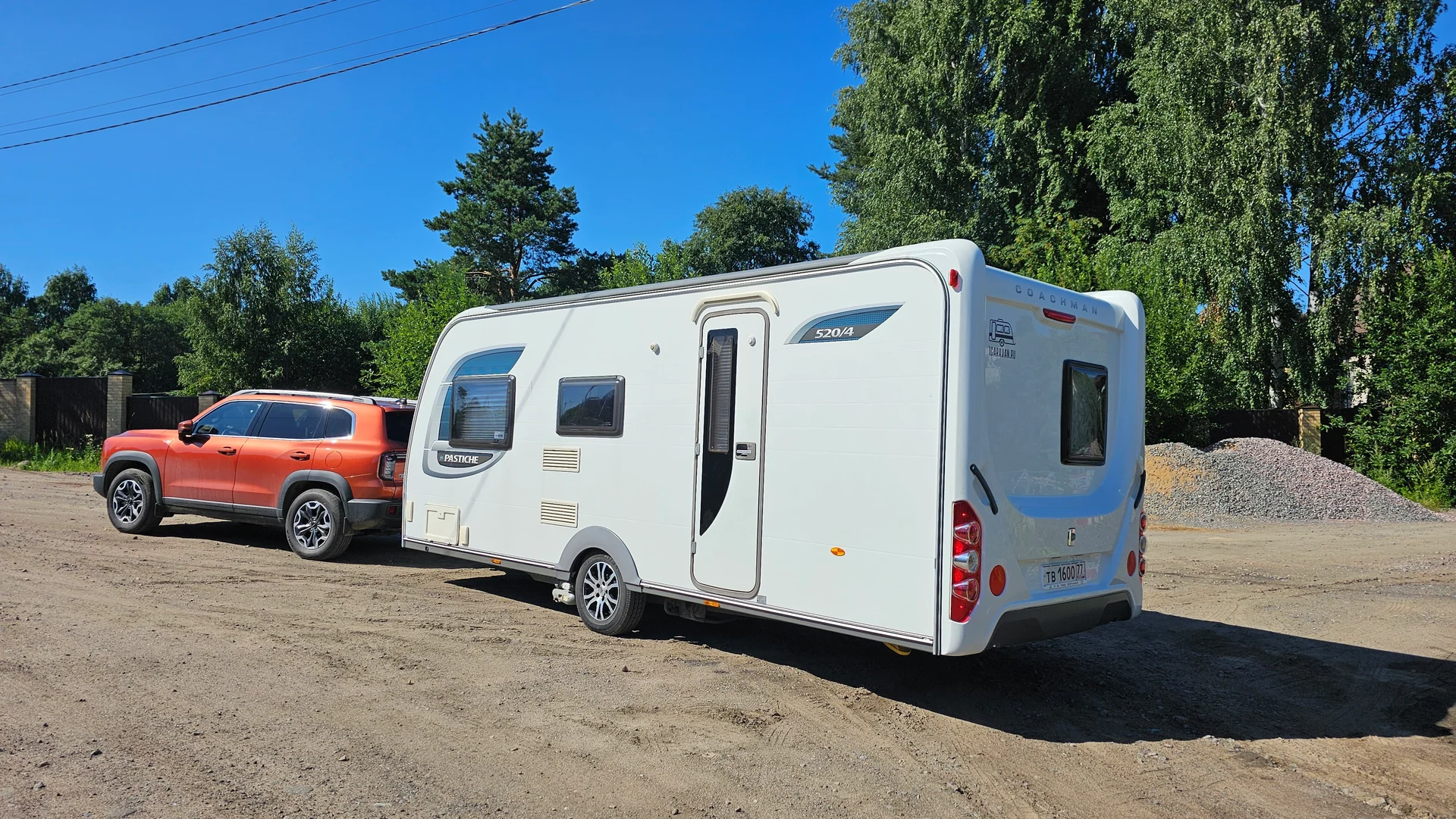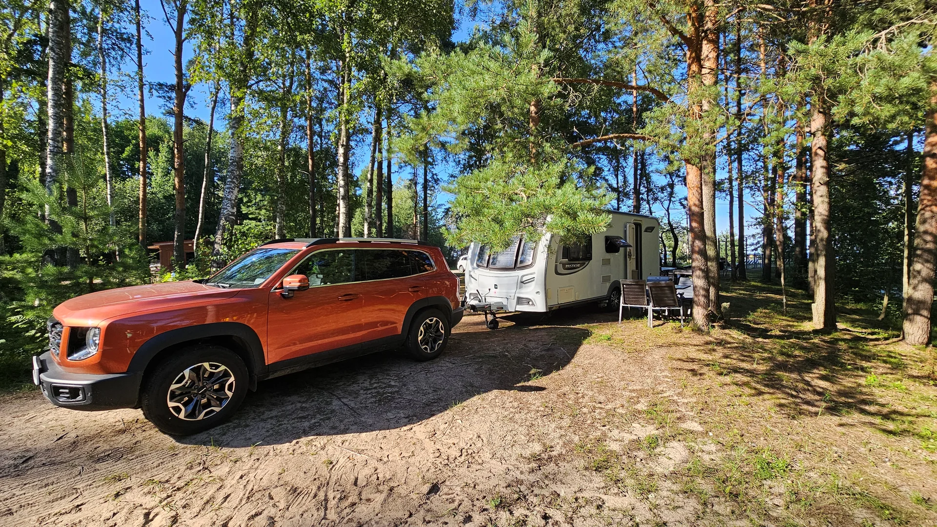 Вернулись, обосновались более менее, попробовали на электро-BMW покататься - дальше Великого Новгорода никуда особенно и не доедешь без многочасовых ожиданий зарядки, прикинули варианты обмена на гибрид и в итоге пришли к мысли, что надо купить нормальный тягач и потом прицеп, постараться не сильно по бюджету много угореть и уже проверить на своём, каково это с прицепом. Благо сейчас и кемпингов стало хоть сколько то и в продаже прицепов достаточно. С машиной где-то за месяц решили и взяли Haval Dargo, оптимально под все наши параметры подошёл, да и нравился он мне изначально ещё со времён анонса.