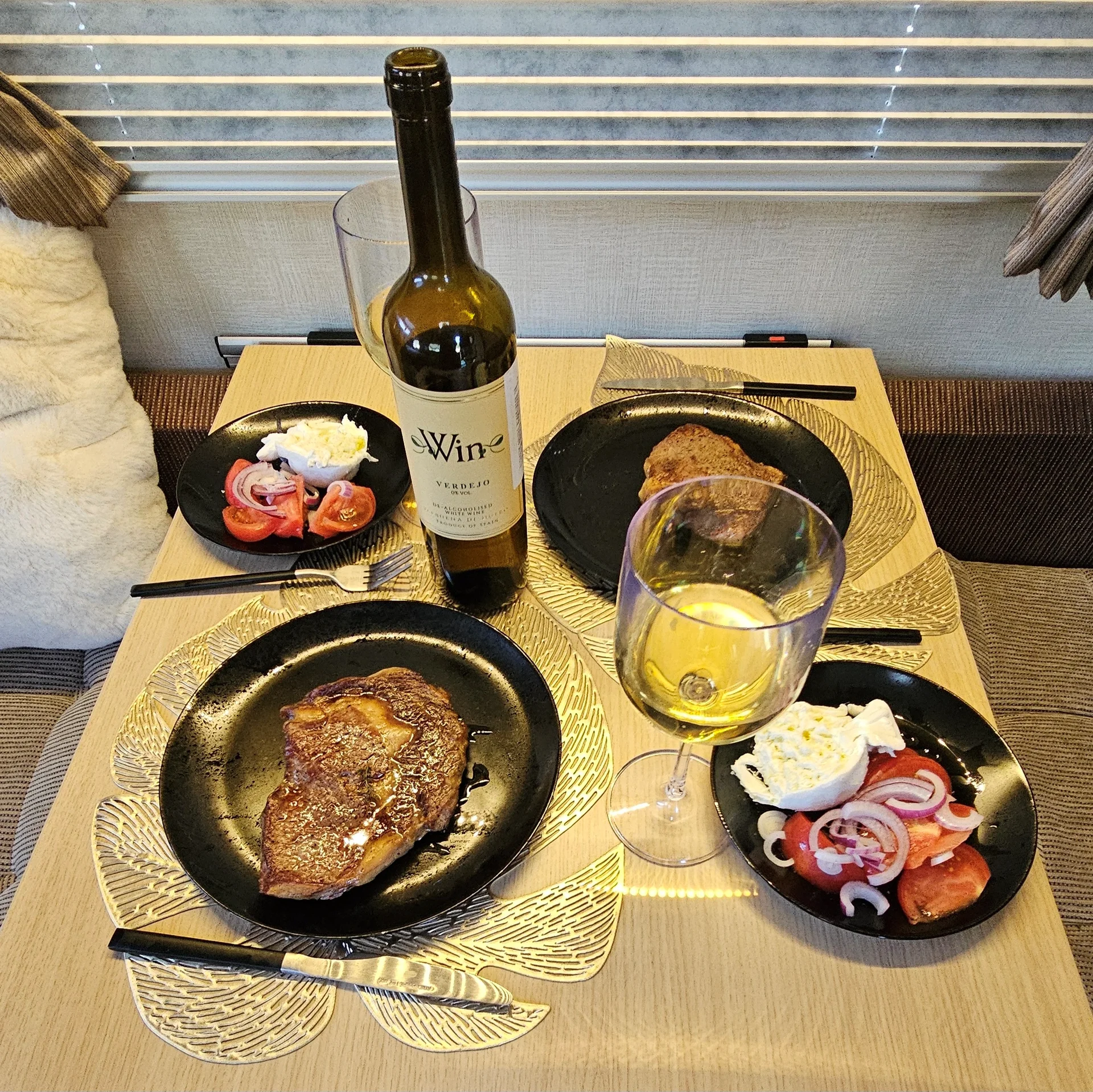 Из неудобств - электричества для кемпера нет, пришлось на своём АКБ жить, благо готовить на газу без проблем, обогрев воды тоже от газа, только что кофеварка не работает - пришлось варить по-традиции.