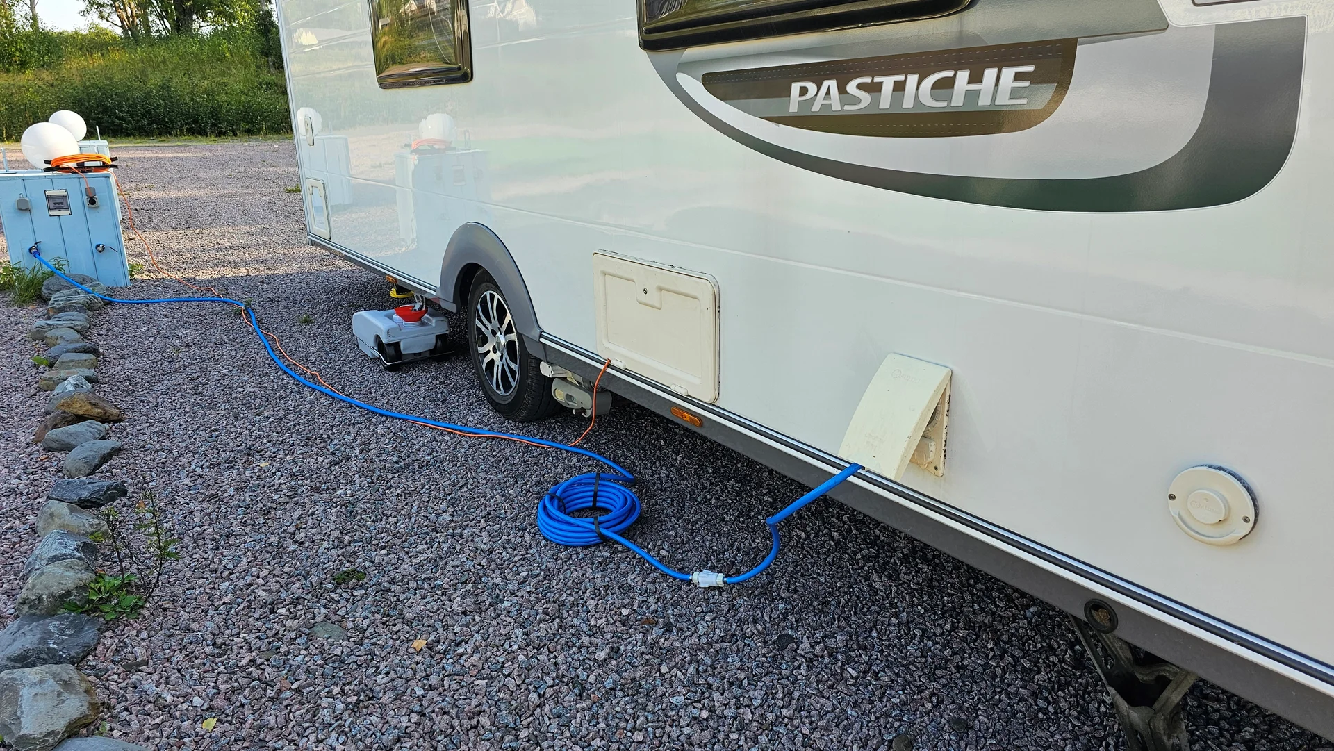 Купил кабель для электричества кемпинговый, купил кабель для электричества с обычной вилкой, и заменил на нём розетку со стороны кемпера сразу (чтобы без переходников на кемпингах подключаться, не люблю я лишние адаптеры), водяной шланг собрал для залива в канистру, переходники с английской розетки (пока не нашёл такого формата розетки нормального разъёма, вроде есть в Италии, но оптом только, непонятно).