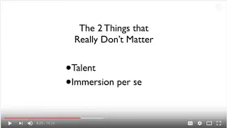 В ролике разбираются мифы про изучения языка, точнее два главных вредных — якобы нужен талант и что просто погружение в язык само по себе работает. Разбиваются оба — талант в должном количестве уже есть у всех кто говорит на родном языке, ну а про погружение уже даже не смешно, примеров людей живущих по десятку лет в чужой стране без языка предостаточно.