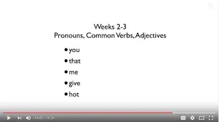 Сам Крис даже даёт примеры понедельно для английского (ну или для англоговорящих какие им слова надо в чужом языке в первые недели выучить).