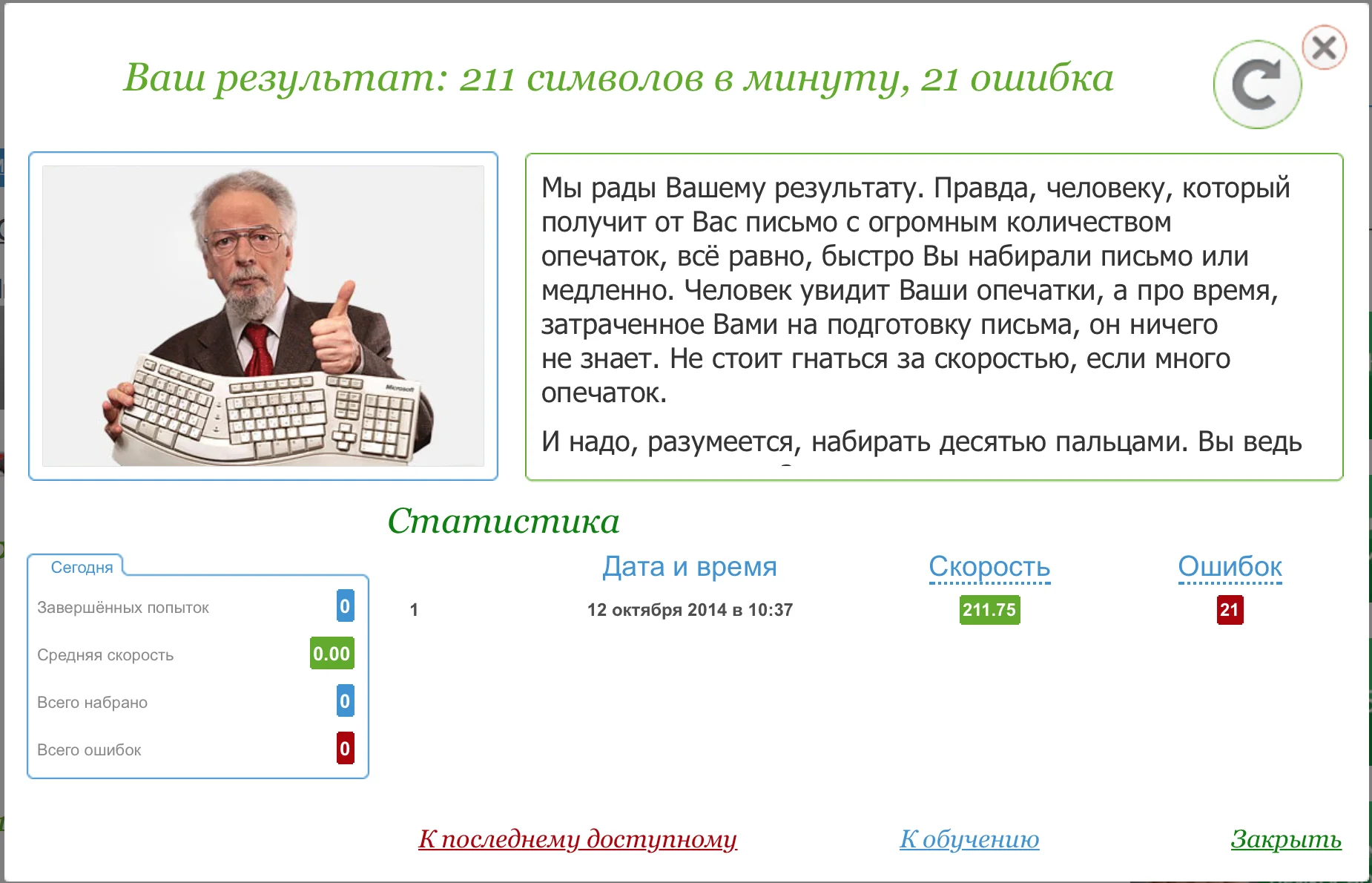 Тест на эргосоло показал совсем печальный результат - 211 знаков и 21 ошибку за тест :(