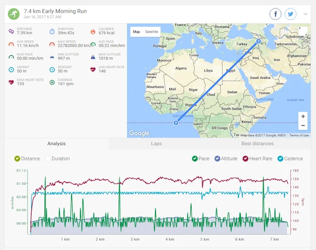 Это всё к вопросу про мои “суперчасы” от адидаса, которые то не работают, то капризничают, то вот мне такие координаты выдают. Но ещё и чуваки в endomondo конечно молодцы, не умеют гасить алгоритмами такие сбои, в отличии от runkeeper и runtastic, там автоматически координты с эватора из лога убрались