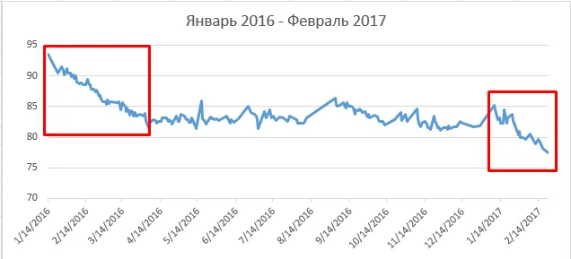 Вот для примера диаграмма за прошлый год и за этот, видно явно зоны сброса.