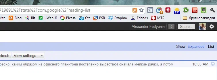Прикольный он, этот Гугле Плюс. Не знаю как для реально соцобщения он в итоге подойдёт, но вот эта общая интеграция системы (почта, ридер, блог и т.п.) очень толково сделана уже сейчас, в бетте. Если продолжат и можно будет постить из ридера в блог или там в ленту - точно буду юзать.