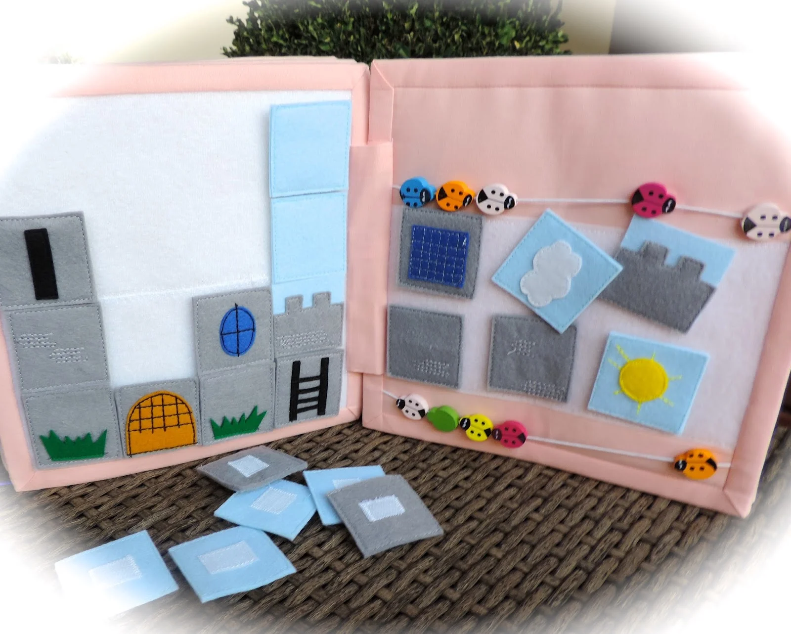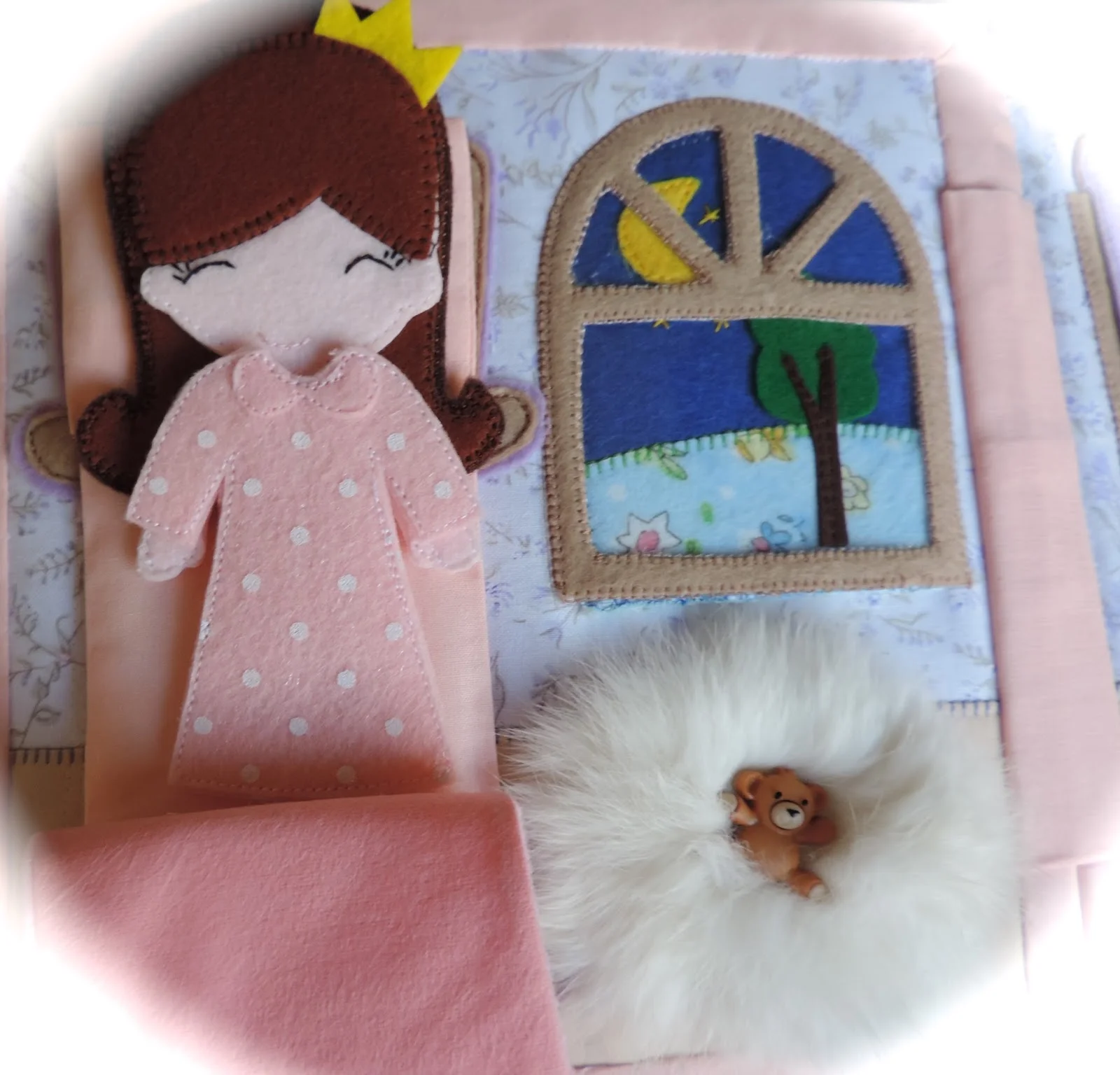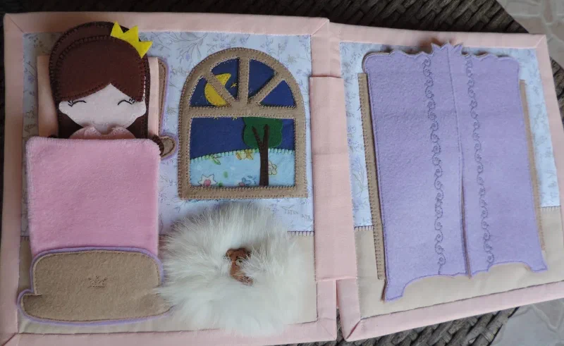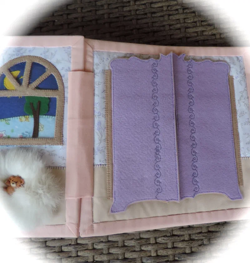 Укладываем спать, учим понятия день-ночь ( меняя картинку в окне) Для тактильных ощущений -коврик меховой и одеяло из микрофибры