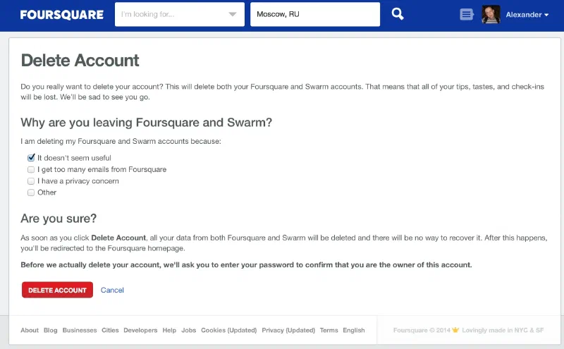 - You’ll then be taken to a page to confirm that you will confirm if you indeed want to delete your account.