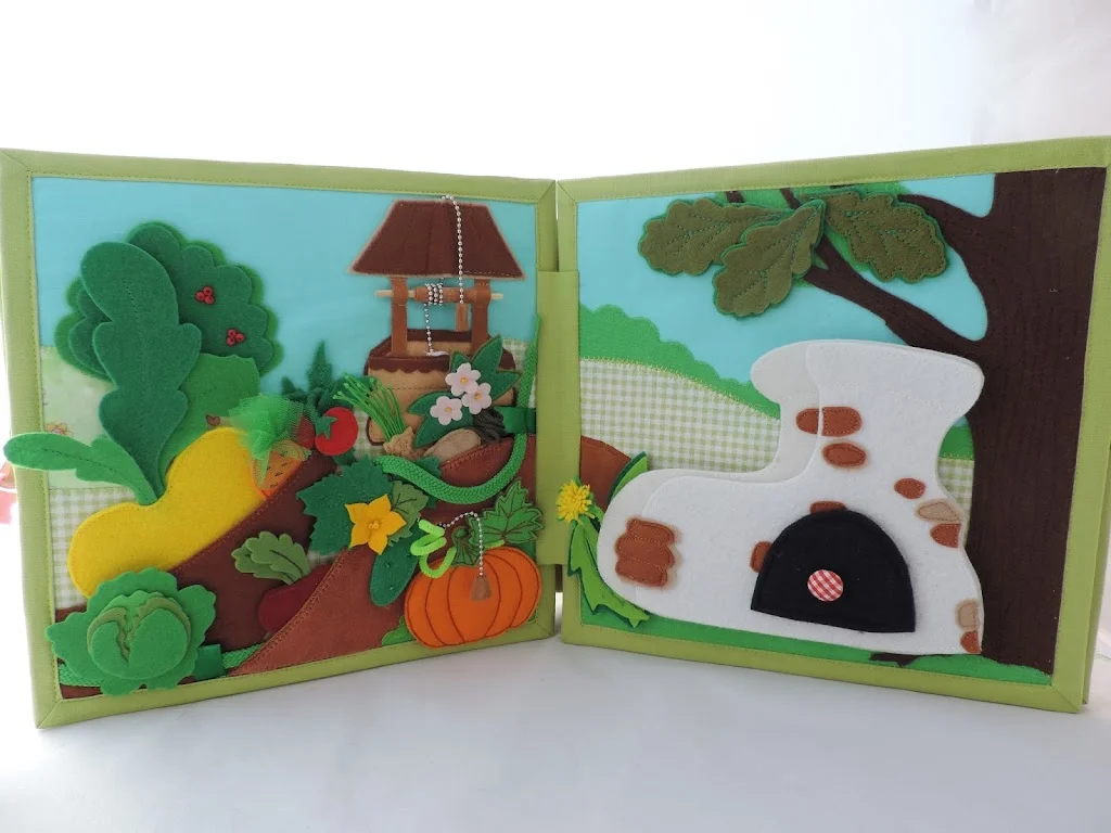 Второй разворот: Огород и печка из сказки “Гуси -лебеди”