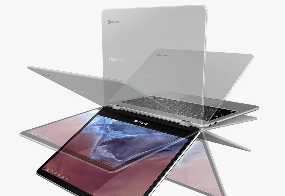 По весне наткнулся в одном из обзоров на эту модель (Samsung Chromebook Pro/Plus), очень много хороших отзывов, много раз в топ-3 лучших решений на рынке даже видел. Это две модели-близнеца, отличие в процессоре - у Pro стоит Intel® Core™ m3 Processor, а версия Plus оснащается самсунговским Hexa-core processor, который по идее даёт экономию энергии и большую совместимость с Андроид софтом. Всё остальное - полностью одинаковое.