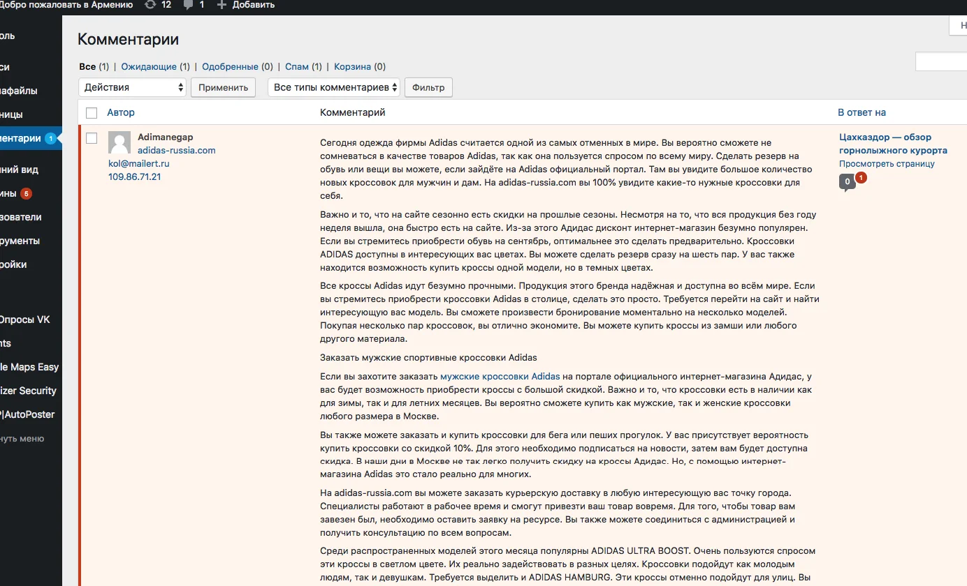Это теперь новый дивный цифровой мир такой, когда вроде бы уважаемый бренд не находит способа продвижения лучше, как нанять спамеров, которые ходят по сайтам и засирают комментарии? Хотя, Адидас практически всё что было у них цифрового угробил, не удивительно.