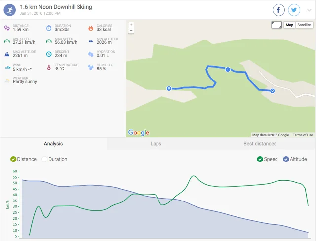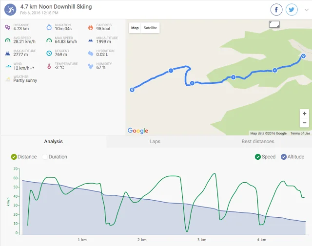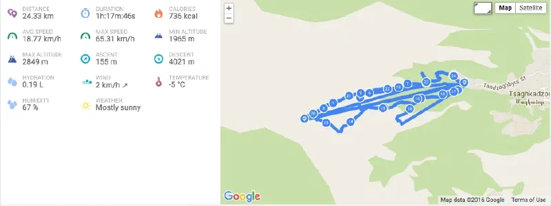 Вот пример записи через Endomondo с утра по всем трассам, на время подъёмников делал паузу