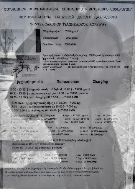 UPD. Сезон 2016/2017 начался 16 декабря 2016, в этом году на две недели раньше. Цены глобально не изменились, отличие в том, что теперь за 12 тысяч драм продают «полный день», а не 30 поездок как раньше. Это хорошее обновление для 3-х дневных и более длинных — там теперь проходы не считаются совсем, так что варианта что вдруг истратил ски-пасс в предпоследний день не получится, это хорошо.