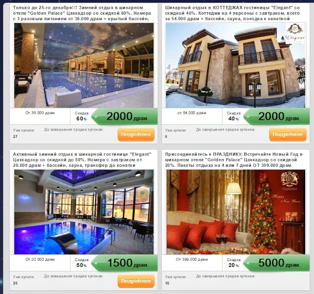 UPD. Есть возможность получить скидку на проживание через покупку купона на biglemon.am — там есть предложения от хороших отелей со скидками на 20% и более, вот например актуальное на сегодня. Минус — для скидки по купону платить надо наличными, учтите при заезде, надо заранее заплатить денег. Но размер скидки того стоит.