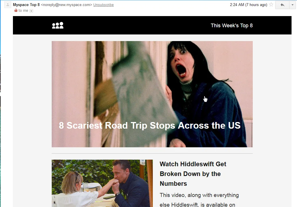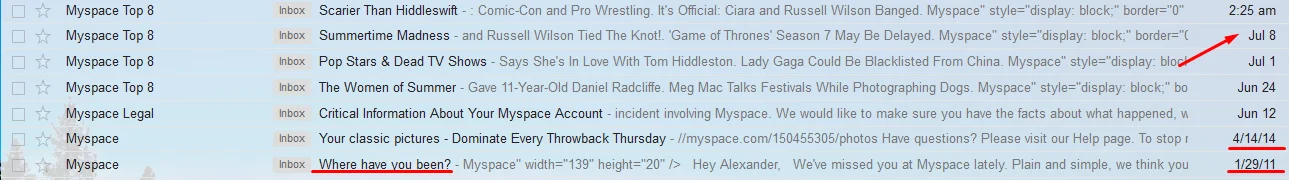 UPD. А вот оно что - их в феврале купили случайно Тайм :) Так и пишут - MySpace, Facebook’s one-time rival, has a new home. The fallen tech star is now owned by Time Inc, which acquired the company almost by accident after buying ad tech firm Viant (The Guardian). Купили по ошибке, теперь вместо того чтобы удалить не раскрывая гробика - решили заспамить все сотни миллионов адресов в базе, хули.