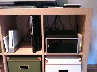 Вот как-то так, фактически процесс завершён, думаю попозже добавить винт на 2 ТБ, и потом ещё один, благо и корпус и начинка позволяют юзать до 5 HDD (из них 4 с горячей заменой) и ещё один DVD-ридер. Ну а выглядит - как простая чёрная коробка с парой лампочек, вполне дополняет PS3 стоящую рядом, да.