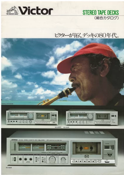 Каталог стерео дек от Victor, январь 1982 года.  Понятно, что основная часть уже про кассеты (как мы и ожидаем увидеть под термином "дека"), но есть ещё и немного катушечников. Товарищ на обложке - Тайгер Окоши (Tiger Okoshi) как они сами пишу [...]