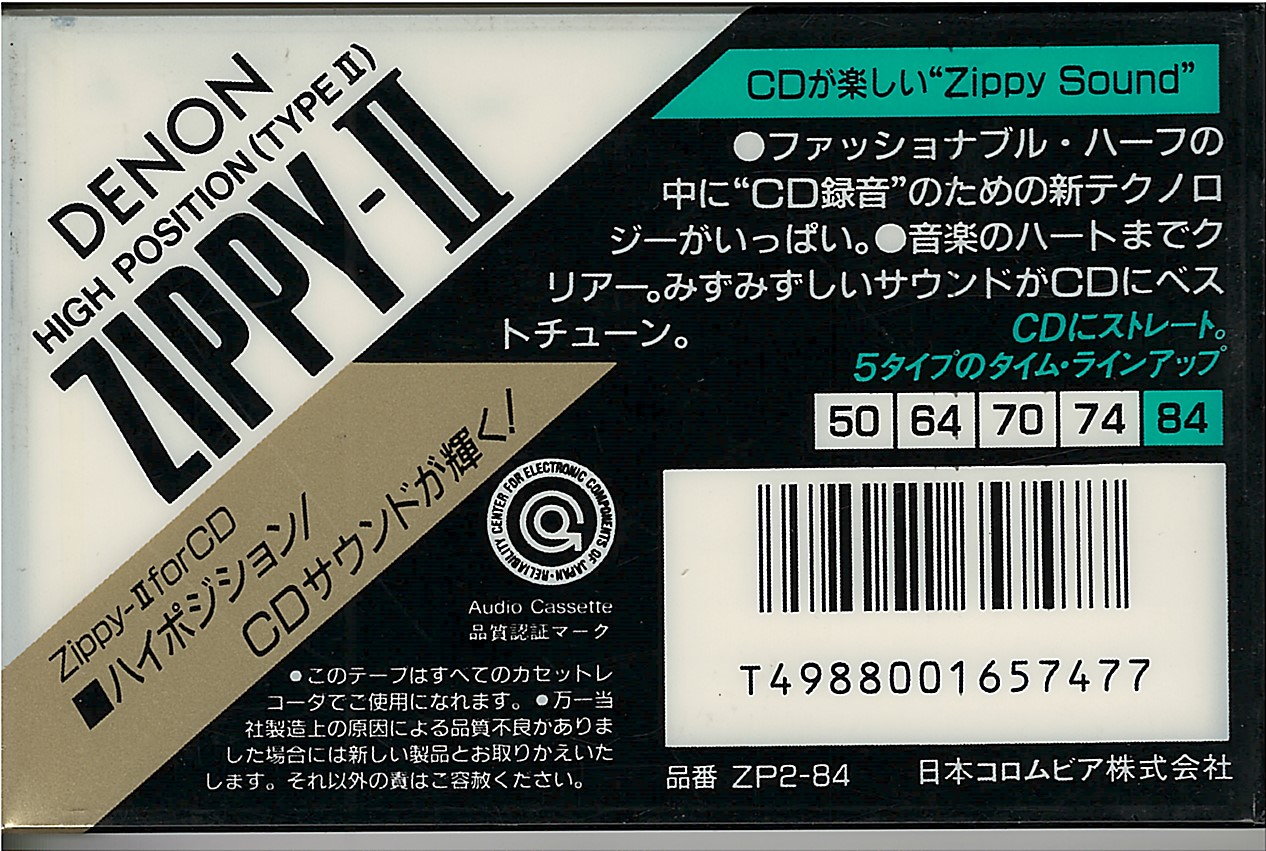Под этим названием ZIPPY выпускались кассеты первого и второго типа (соответственно I и II в названии), по плёнки копии «второй снизу» модели в том же году, но более молодёжном оформлении дизайна кассеты. Изначально появилась в конце 1987 версия хром, чуть позже сделали добавление в скобках для RD-R (Zippy) первого типа и потом в 1989 оба варианта вышли в очень похожем дизайне кассет и упаковки, отличие было в цветах надписей на кассетах. Целевая группа — молодёжь, которая должна была делать копии с СД для плееров, соответственно тайминг был под разные варианты дисков — 50, 64, 70, 74 и редкий 84 минуты, для совсем плотных дисков, чтобы уж точно влезло. Собственно эта самая кассета и есть на 84 минуты.